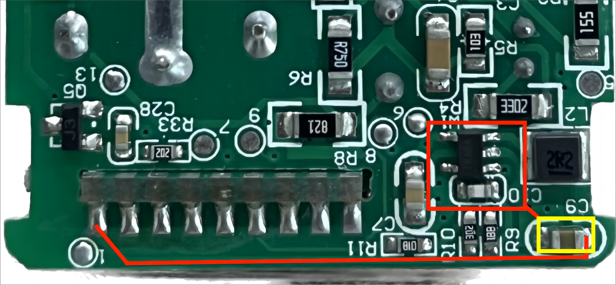 通过拆解发现,这款智能插座的内部非常的简洁,直插型元器件以及无线通信模块,均整齐地排列在PCB的正面,贴片器件在PCB的背面。元器件的走线也非常合理,没有出现“飞线”的问题。