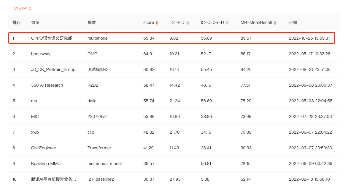 OPPO中文多模态预训练模型登顶MUGE