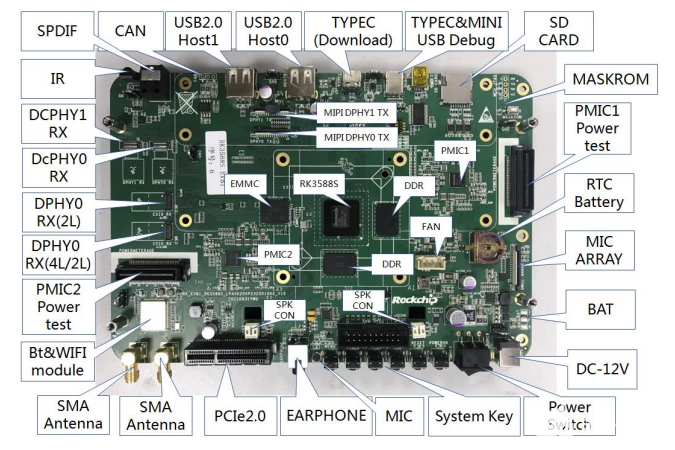 图:RK3588S EVB 功能接口正面分布图