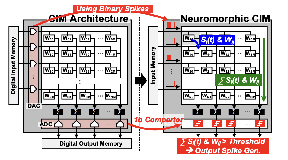 传统存内计算架构与神经形态存内计算架构对比/ 韩国科学技术院
