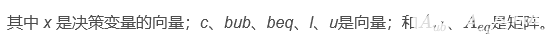 x:在满足约束的情况下将目标函数最小化的决策变量的值;数据类型:一维数组