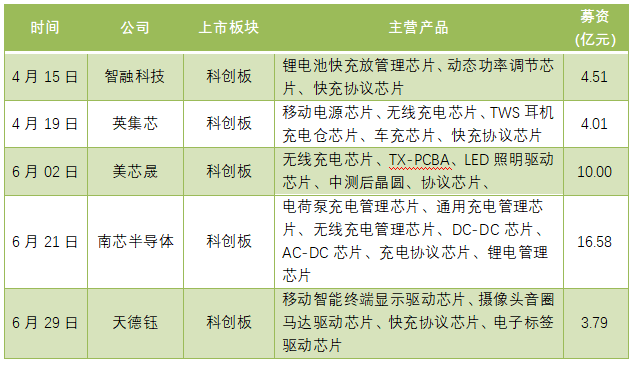 天德钰、智融科技、南芯半导体、美芯晟IPO刚获受理,这四家半导体企业均涉及快充协议芯片,并且它们均计划在科创板上市。据了解,科创板的定位是面向世界科技前沿和国家重大需求,使命是服务于符合国家战略、突破关键核心技术、市场认可度高的科技创新企业。由此可见,天德钰、智融科技、南芯半导体、美芯晟这四家企业自身的技术实力较强,在某一细分领域掌握着关键核心技术,产品竞争优势强,市场认可度高。