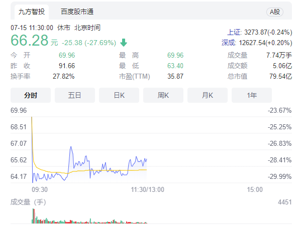 7月15日,中科蓝讯在上海证券交易所科创板上市。此次上市,中科蓝讯发行价格91.66元/股,开盘价为69.96元。截至7月15日上午十点,中科蓝讯开盘跌27.69%,总市值79.54亿。