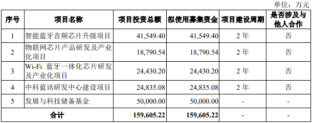 Wi-Fi蓝牙一体化芯片研发及产业化向,2.48亿用于中科蓝汛研发
