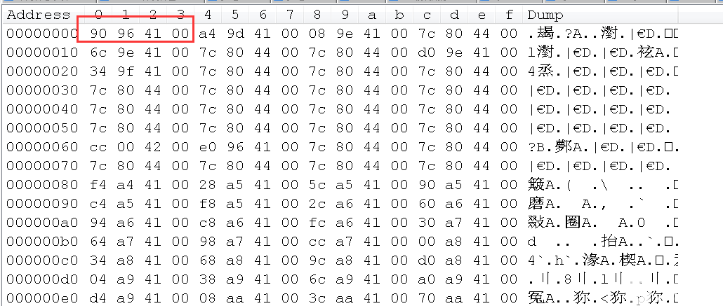 最后分析有关func的输出,为何都是00419690,而不是00410000: