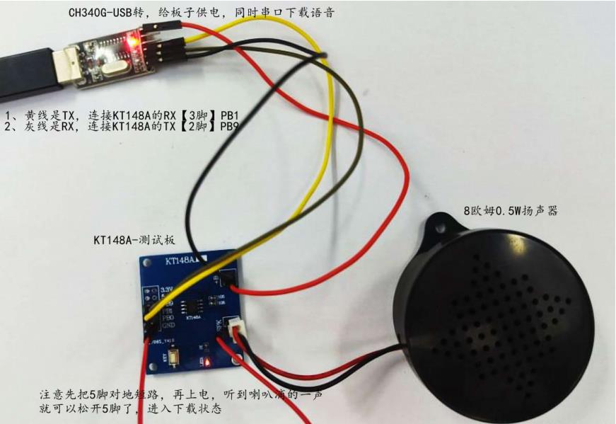 KT148A语音芯片怎么烧录语音进入芯片里面,这里需要用到串口和电脑端的工具
