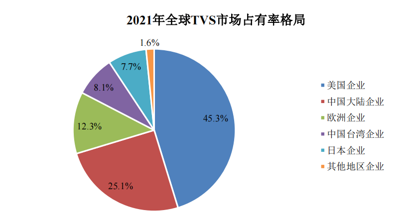 电子元器件行业协会发布的研究报告,2021年全球前五大TVS厂商分别为力特 (