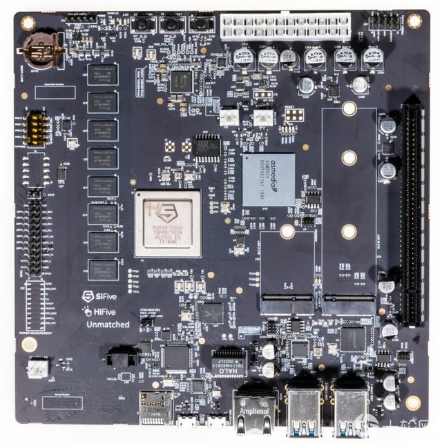 HiFive Unmatched主板采用标准的Mini-ITX尺寸,搭载SiFive FU740 SoC,具有4个64bitSiFive U74处理器核心,搭配