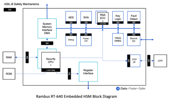 Rambus 信任根 RT-640 嵌入式硬件安全模块 (HSM) 已获得符合 ISO 26262 国际标准的汽车安全完整性等级 B (ASIL-B) 认证。