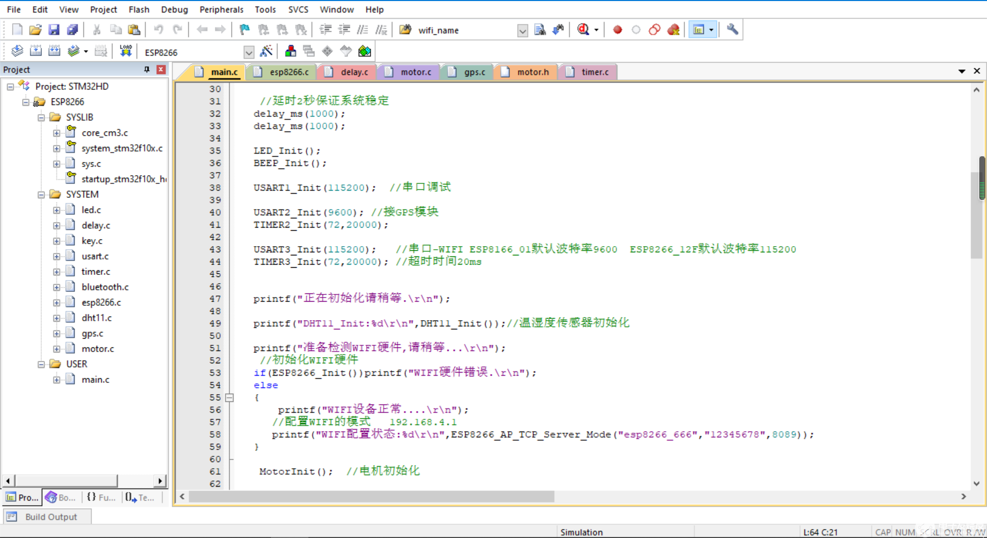 WIFI接的串口3: PB10(TX)--->接ESP8266的RX PB11(RX)--->接ESP8266的TX --3.3V