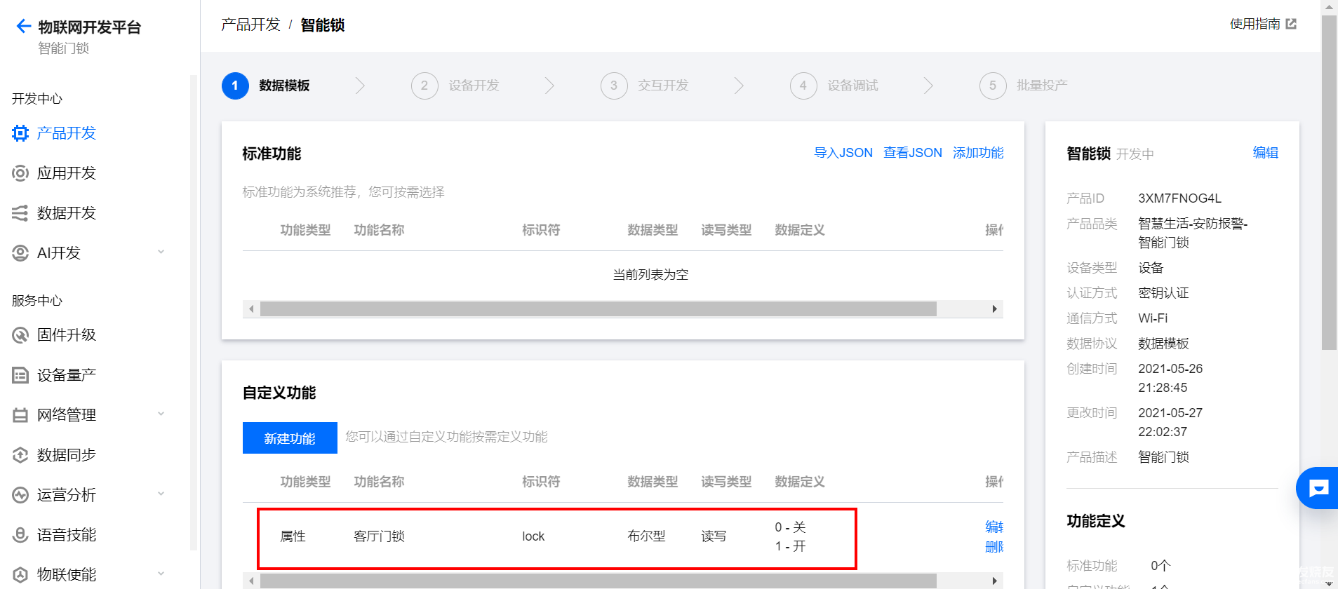 本次我以智能锁为产品模型,在腾讯物联网平台创建一个设备,使用STM32F103系统板+ESP8266+LED灯完成智能锁产品的模拟开发;用户设备端可以按下指定的按键进入配网模式,打开腾讯官方的微信小程序,扫描产品二维码,根据步骤完成对设备的配网操作。