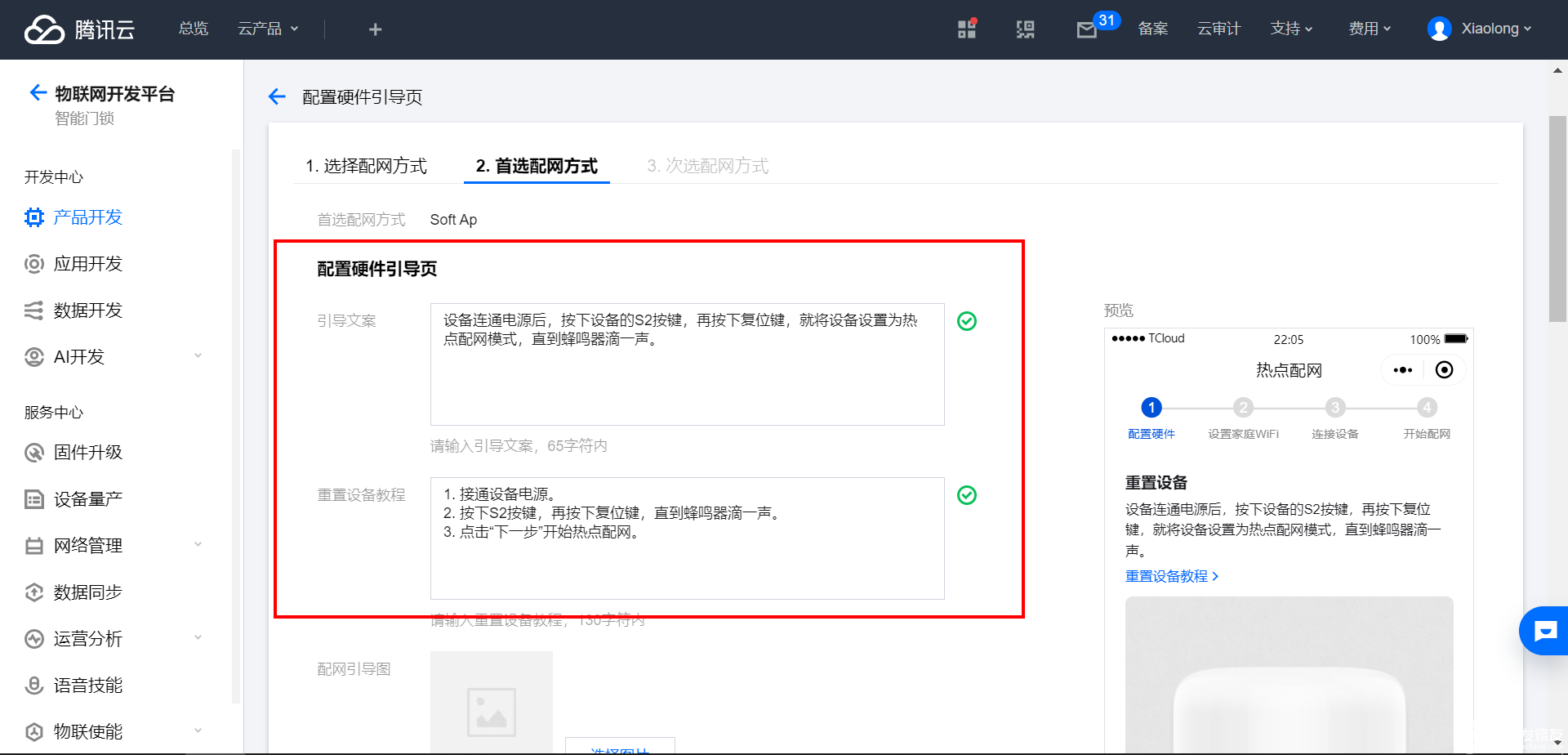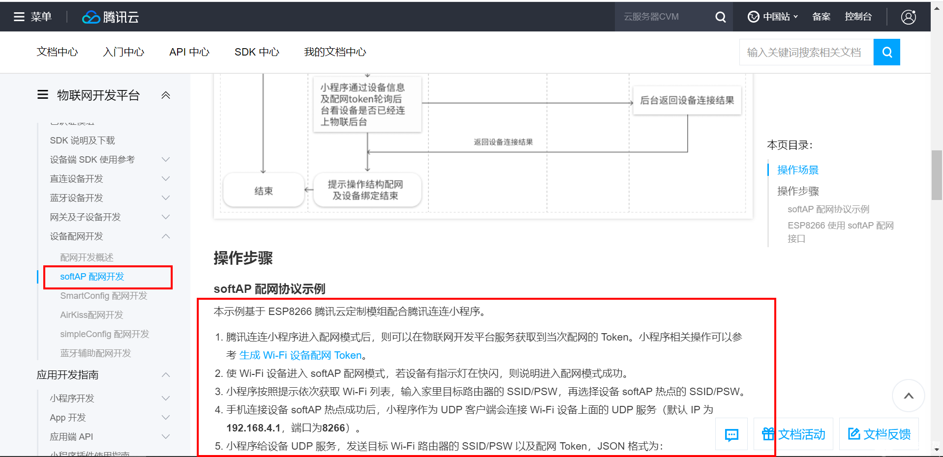 关于配网的流程,在腾讯官网有详细介绍,看这里:物联网开发平台 softAP 配网开发 - 设备端开发指南 - 文档中心 - 腾讯云