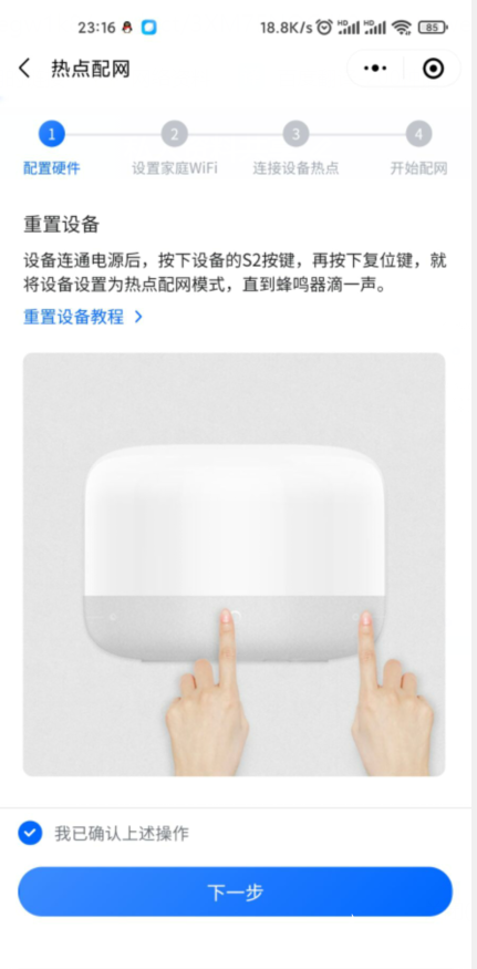 这个页面比较重要,需要将设备进入配网的方法告诉用户,引导用户去操作,完成进入配网模式: