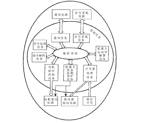 在本嵌入式机器人控制器开发过程中,采用这种处理办法:将对每个独立的硬件(例如串行通讯)进行操作的驱动程序段放在一个任务中,也就是说要想对某个设备资源进行操作,只有依靠执行相应的任务来实现。这样无论何时切换任务,都不会对任何独立的“外设”造成影响。这样做彻底避免了资源冲突和重入问题而且利于系统维护与升级。各个任务之间要实现通信,可以调用os_send_signal函数及全局变量。