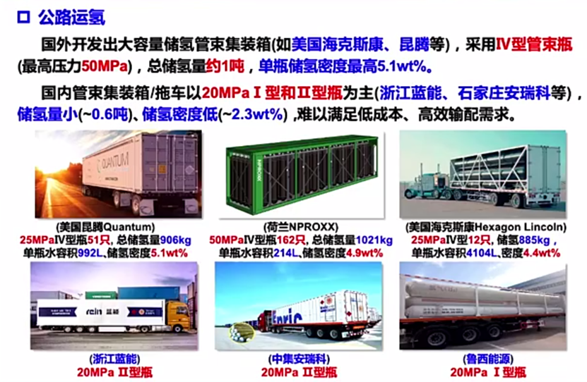 在公路运氢方面,国内还是以20MPa的Ⅰ型和Ⅱ型瓶为主,储氢量小、储氢密度低,难以满足低成本和高效输配需求。