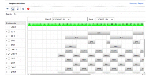 Multiplexed I/O (MIO):PS 端外设 IO 复用,这是什么概念呢?前面介绍了 ZYNQ 主要分 PS/PL 两大组成模块,PS 端前面介绍的外设如 USB/CAN/GPIO/UART 等都必要需要引脚与外界打交道,这里所谓的复用与常见的单片机、处理器里引脚复用的概念一样。但是(这里划重点),ZYNQ 具有高达 54 个 PS 引脚支持 MIO,MIO 具有非常高的灵活度以达到灵活配置,这给硬件设计、PCB 布板带来了极大的便利!,MIO 的配置利用 vivado 软件可以实现灵活配置,如下图所示。