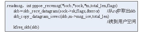 协议栈的处理由各协议决定,如TCP协议的处理过程是相当复杂的,而这里的pppoe的处理却非常简单,但由它却可以避开细节,更清楚地看到流程的梗概,如下图所示: