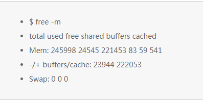 我们只想检测这些缓存的数值是否接近 0 。不为 0 的可能导致较高的磁盘 I/O(通过 iostat 命令来确认)和较差的性能问题。上面的例子看起来没问题,都还有很多 M 字节。