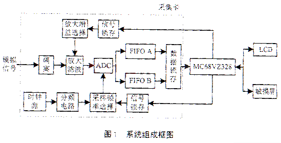 数字存储示波器是一种具有数据存储、预触发、波形存储、便于与PC机通信等特点和优点的便携式智能仪器,广泛应用于机械故障检查、野外作业、工业现场等。本文介绍的便携式数字存储示波器构建于嵌入式μClinux操作系统平台之上,采用Motorola公司的龙珠系列MC68VZ328(以下简称VZ328)芯片作为处理器,采样频率与放大幅度可通过触摸屏调节;系统成本低、操作简单,可实现采集、存储和分析功能,具有实际应用前景。