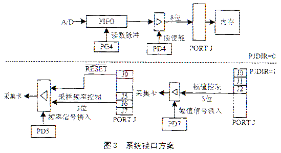 系统使用了VZ328的I/O端口读取数据并发出控制信号。具体方案如图3所示。