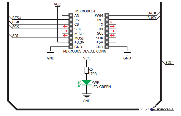 eInk Click电路板接口信号:SPI、BUSY、D /〜C