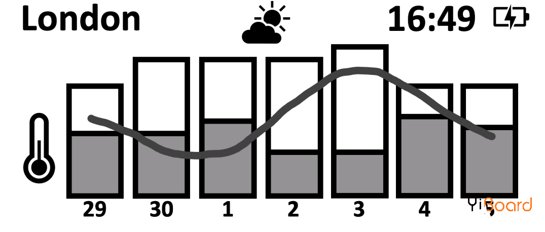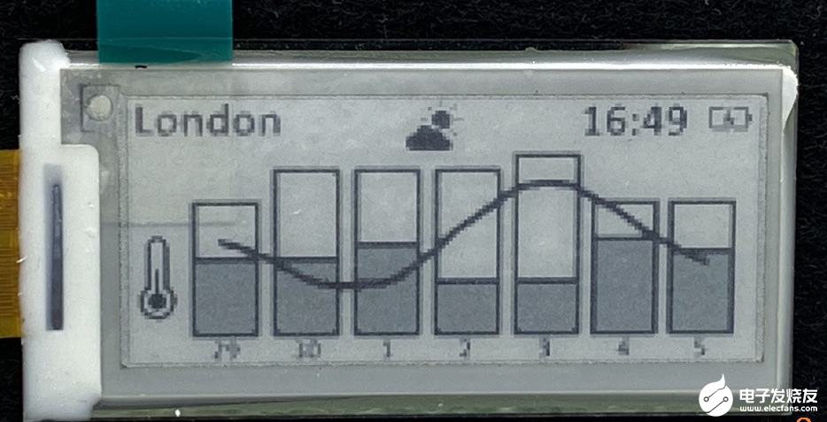 ● 最后,可以将显示最近7天最高/最低温度和大气压力趋势的框和线直接直接绘制到屏幕上。