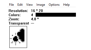 显示20×16像素的图像(很小),因此我在上图中进行了拉伸。它的大小约为1 KB,20×16像素和2位灰度色(白色、两个灰度和黑色)。