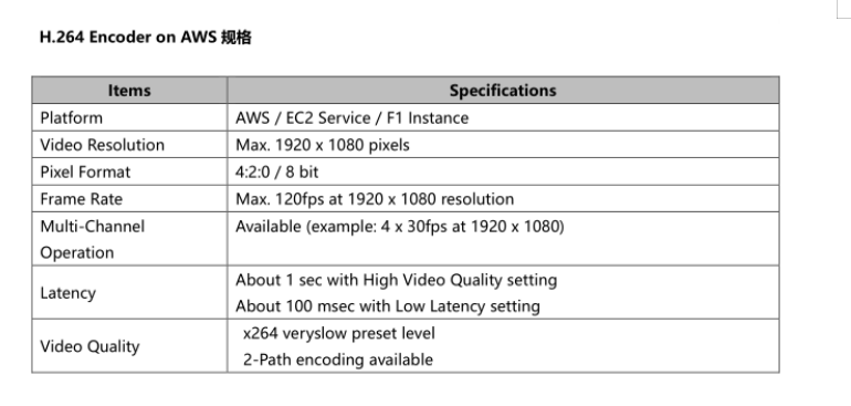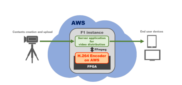 AWS F1实例使用 FPGA 实现自定义硬件加速交付。H.264 Encoder on AWS在F1实例上利用FPGA,为用户提供基于Socionext专有硬件编码器技术开发的加速器设备,完成软编码无法实现的高速、高画质视频压缩处理。此外,由于H.264 Encoder onAWS使用FFmpeg作为应用接口,因此视频分发服务提供商可以轻松地将其集成在现有的系统中使用。
