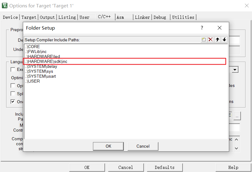 2.在MDK中添加SDK的源文件,并将sdk的头文件加入MDK中。
