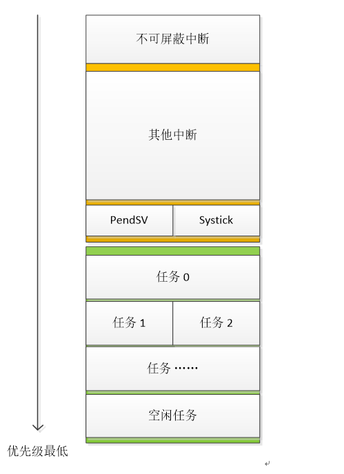 其实我们可以从 Cortex-M3 的中断优先级得到启发,即空开部分优先级不使用,留待后面扩展用,比如设计优先级时可以设置成 3、5、7、9、11,留出最高的0~2用于可能的高优先级任务,中间空出一个或两个优先级用于扩展,这样一旦后面需要增加其他优先级的任务,会显得异常简单(可能会有额外的一点内存损耗,但却是值得的)。