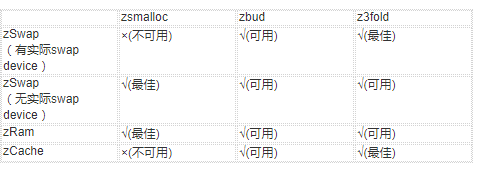 结合上面zSwap / zRam /zCache的介绍, 与zsmalloc/zbud/z3fold分别怎样组合最合适呢?