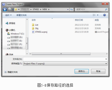 首先启动Keil uVision4,点击菜单栏Project-New uVision Project,选择工程的保存位置,保存位置选择在之前建立的MDK文件夹下,如图2所示。