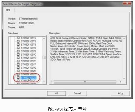 在弹出的界面中选择所使用的芯片信号,笔者使用的芯片型号为STM32F103ZET6,所以选择STM32F103ZE,如图3所示。