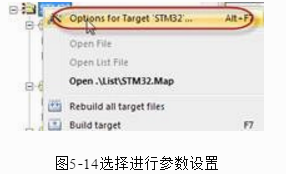 接下来需要对工程进行一些参数设置,在中STM32上右击,选择第一项Options for Target ‘STM32’,如图8所示。