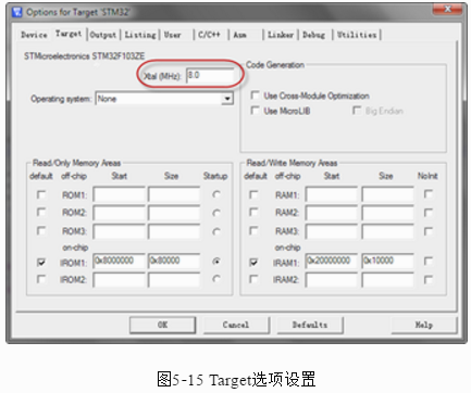弹出窗口如图9所示。在这个窗口中共有10个选项卡,第一个选项卡Device用于选择使用的器件,由于在新建工程的时候已经选择这里可以不用在选择,当前的工程如果在后期要更换使用的芯片时可以在这个选项卡中更换芯片,同时还要注意更换对应的启动文件。在Target选项卡中,一般只需要填上使用的晶振频率即可,其他都可以保持默认。