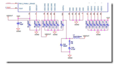 核心电路首先需要我们主要的是这部分的供电问题,具体如下图所示,当你看到这部分电路的时候也许会感到怀疑,对于一般的处理器直接共3.3V的电源就可以了这里为什么会有一个VDDOUT呢?他是何处神圣呢?