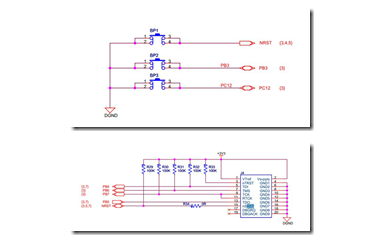 复位电路采用简单的按键将复位引脚拉低即可,而调试接口采用的是标准的JTAG接口,所以也没有什么特别之处,故而这一小节略过。