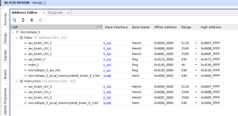 在ZCU106单板上,有312个Block RAM,有96个Ultra RAM。客户需要1MB存储空间。实现MicroBlaze时,也使用Block RAM实现Cache,和Local Memory。剩下的个Block RAM不够做1MB的AXI BRAM。为了实现1MB空间,可以用Block RAM实现512KB AXI BRAM、256KB AXI BRAM;再使用Ultra RAM实现256KB AXI BRAM。为这三个AXI BRAM分配连续的地址空间,从而使软件感觉到这是一个存储器。其中,Block RAM和Ultra RAM还可以根据实际情况调整,比如用Block RAM实现512KB AXI BRAM;用Ultra RAM实现512KB AXI BRAM,两个存储器也可以实现1MB存储空间。