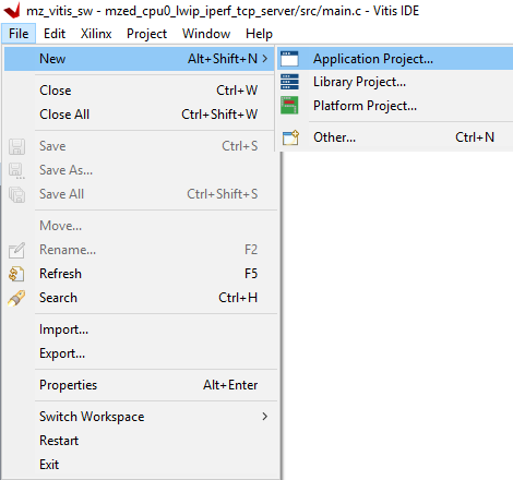 在Vitis的File菜单里,选择"New --> Application Project"。