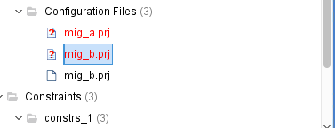 1. 如果是DDR3的MIG IP Core,会有Configuration Files,如果我们修改了MIG,并重新生成后,就会经常出现这个Configuration Files找不到的情况,像下面这样: