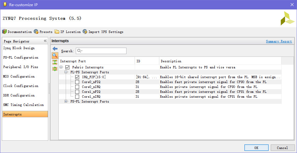 选中Fabric Interrupts和IRQ_F2P[15:0]
