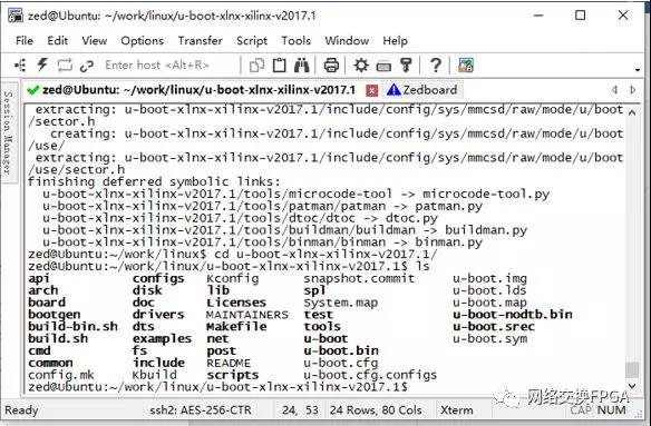 将下载好的u-boot-xlnx-xilinx-v2017.1.zip文件上传到Ubuntu服务器,使用命令unzip解压缩后进入u-boot-xlnx-xilinx-v2017.1目录,在 u-boot 的文件夹下有很多子文件夹构成,其中每个文件夹都实现一个对应的功能。