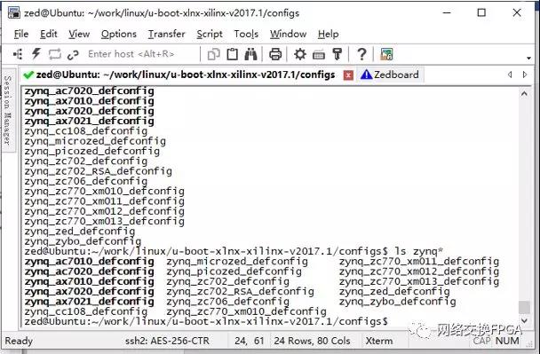 在configs文件下保存有各个开发板的默认配置,我们搜索zynq有关的配置文件,发现zynq_zed_defconfig文件,这个就是Zedboard默认的配置选项。而ax70**系列的则是黑金开发板的默认配置文件。