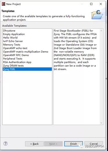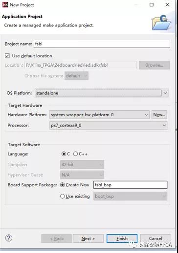 启动VIVADO SDK,选择File ->New -> Application Project创建一个新的SDK工程,工程命名为fsbl,其余保持默认不变。