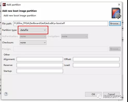 在新的选项卡中填入uboot.elf的路径,这里一定要注意类型为Datafile类型,否则无法正常启动。