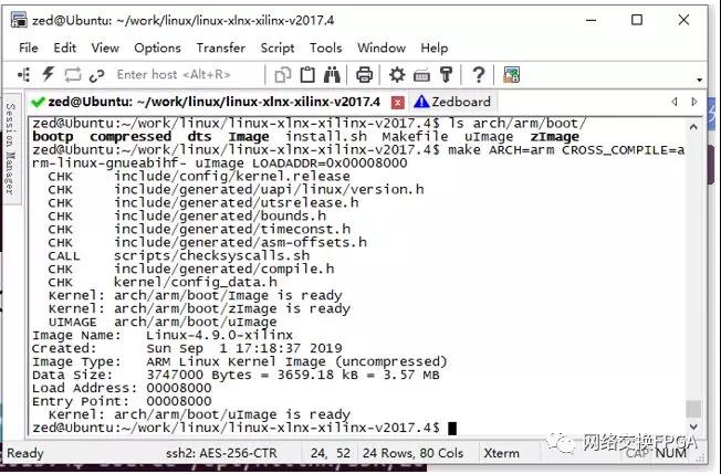 生成的内核位于arch/arm/boot目录下。拷贝uImage到Zedboard的SD卡准备启动时使用。