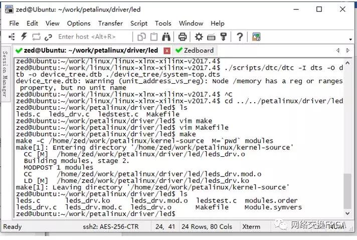 挂载成功后使用ssh登陆Ubuntu并转到Ubuntu的驱动目录,执行make,得到驱动.ko文件。