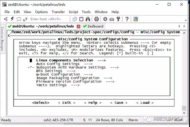 使用命令make ARCH=arm CROSS_COMPILE=arm-linux-gnueabihf- xilixn_zynq_defconfig进行内核配置文件的写入。写入完成后提示written to .config。可用使用make menuconfig配置内核选项: