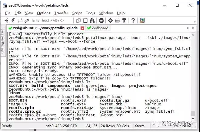 现在,我们已经得到BOOT.bin文件,设备树device_tree.dtb文件和根文件系统uramdisk.image.gz根文件系统。将这三个文件放入Zedboard的SD卡,上电启动就可以使用Linux操作系统了。