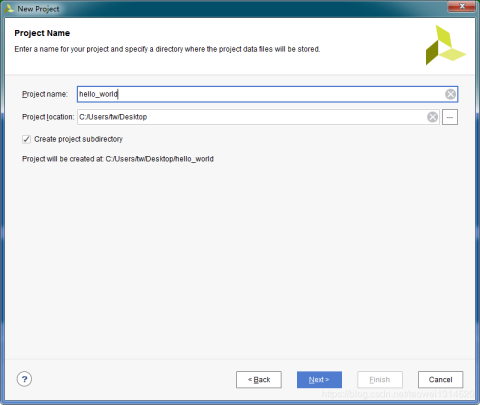 填写工程名 hello_world, 点击Next